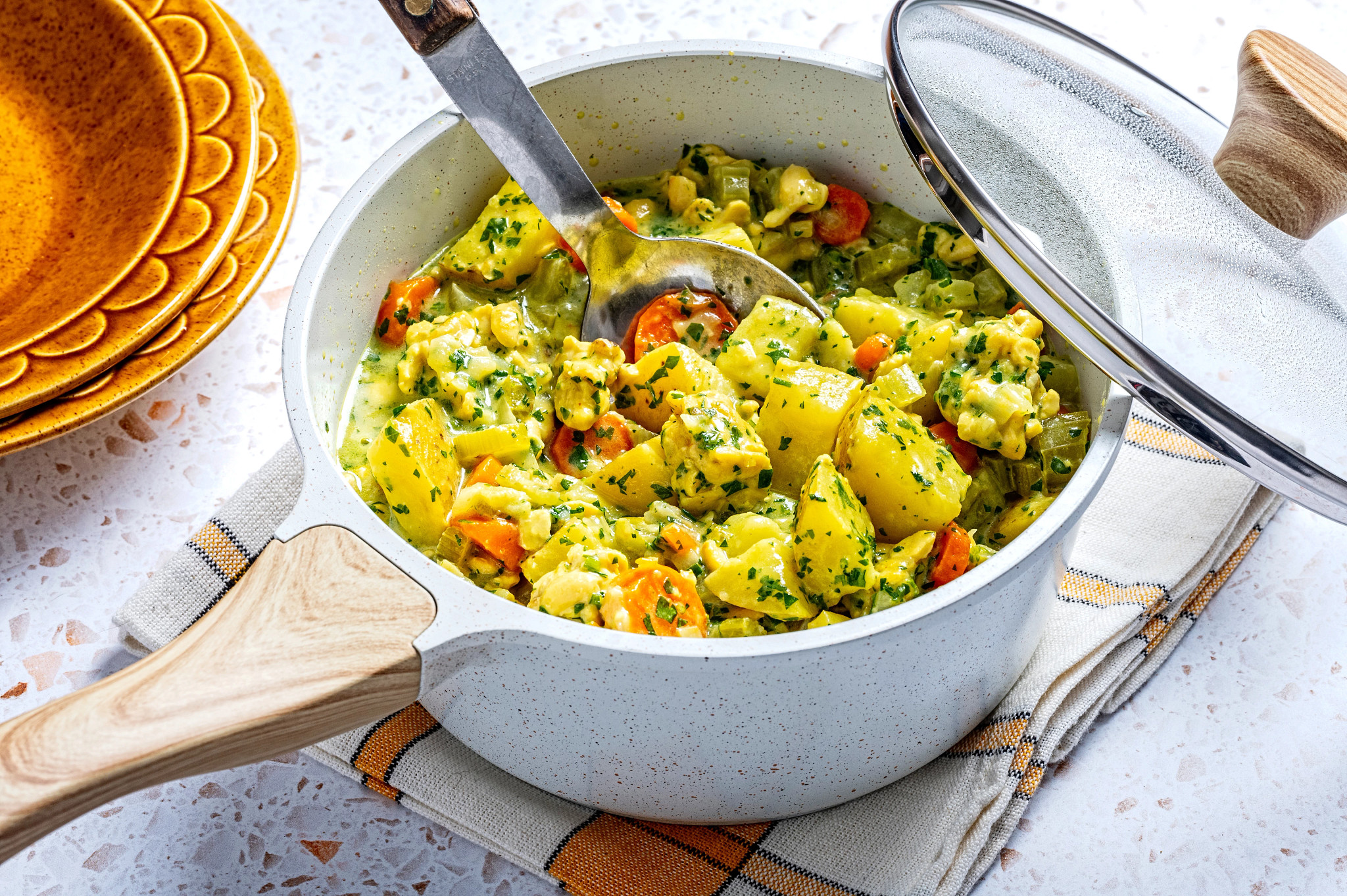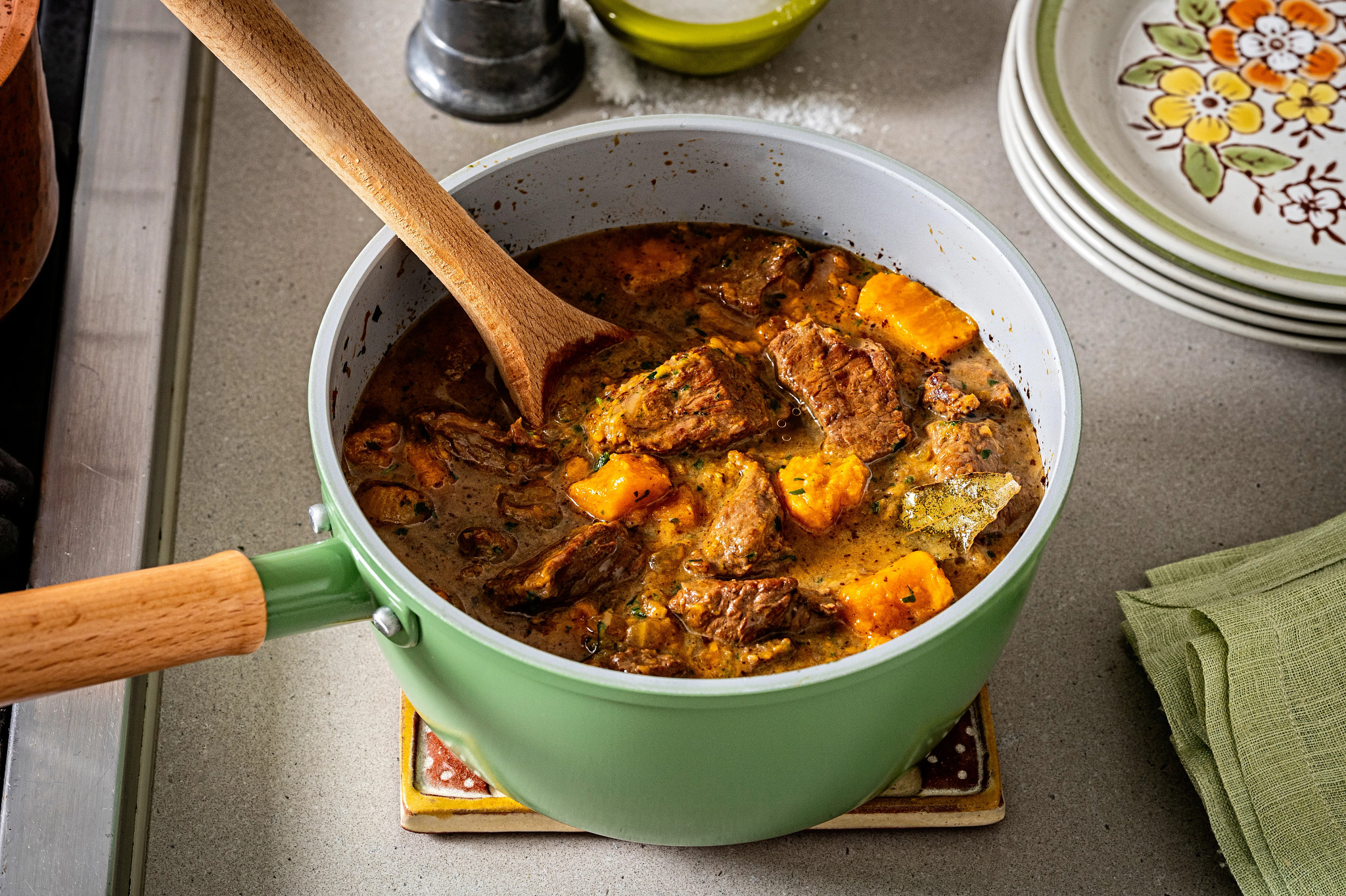Remember those fragrant stews that made the whole house feel cozy while they simmered on the stove? Here are some modern twists on those simple hearty meals that are likely healthier than Grandma’s and easier to put together. All of these were developed in a two-quart pot, so you don’t need anything fancy. Make sure your knife is sharp so slicing up the ingredients is a breeze. Then enjoy a filling bowl of flavor-filled stew that will warm you up, no matter the weather.