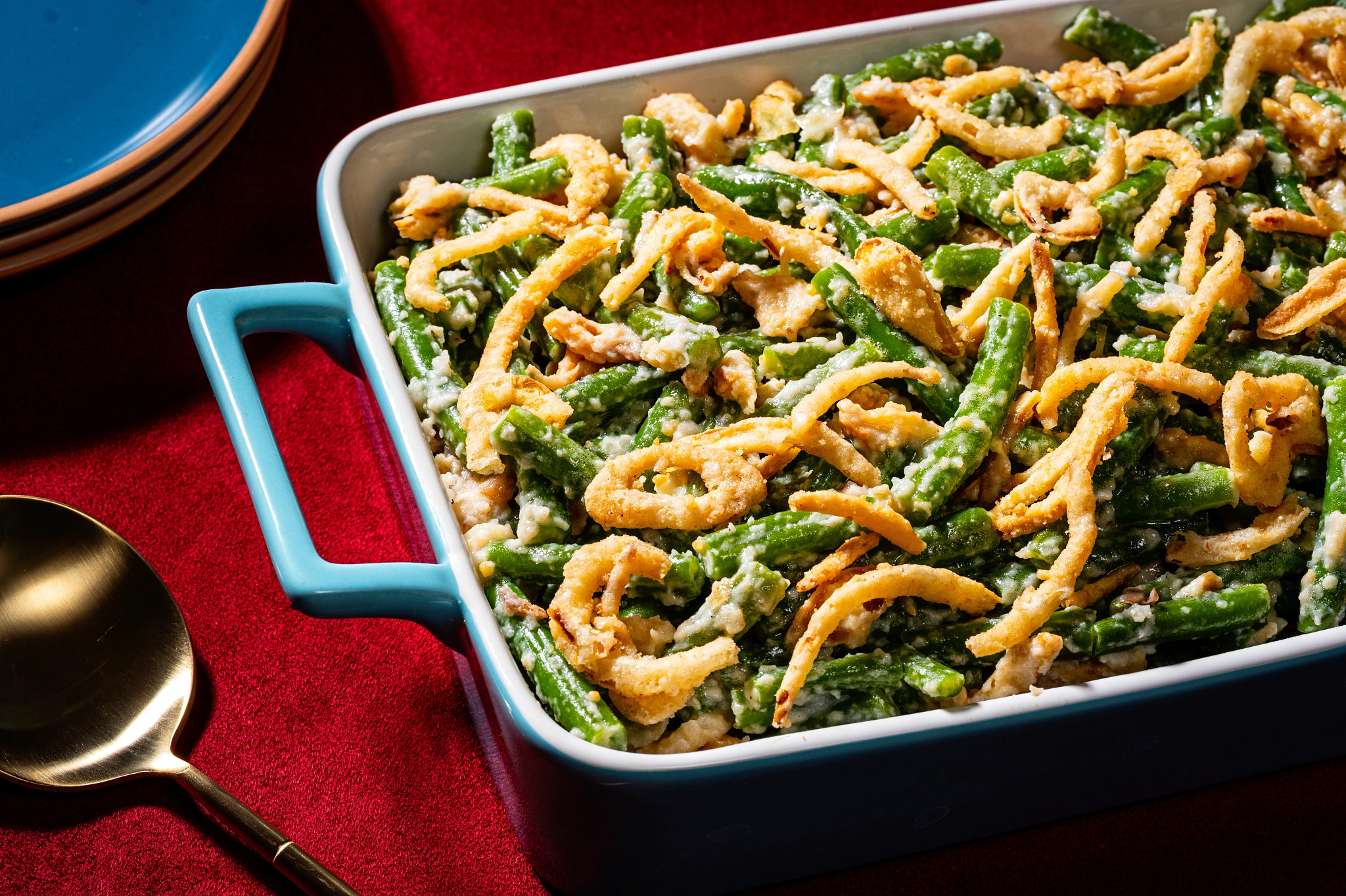 This super-easy and healthy bean casserole from Shannon Epstein at Fit Slow Cooker Queen is a tasty alternative to the regular recipe that calls for a can of cream of mushroom soup. You can skip the unhealthier part (the French-fried onions) if you prefer and use dried onion flakes (mixed into the beans while they cook) for extra flavor. Top the casserole with toasted almond slivers before serving.