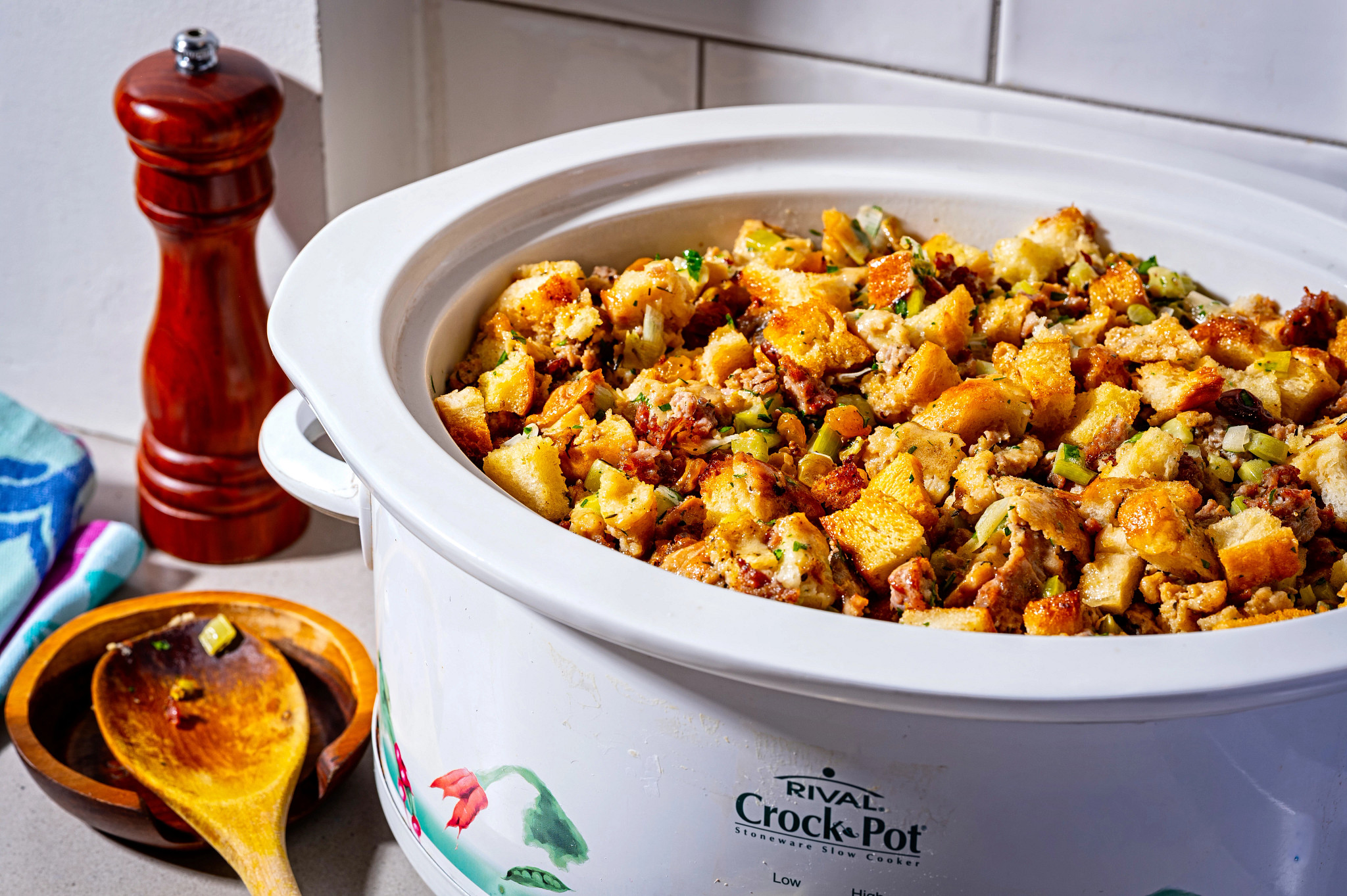 I don't like placing my stuffing into the turkey cavity, so the slow cooker is the next best thing. This keeps the stuffing moist and warm until it's ready to be served.