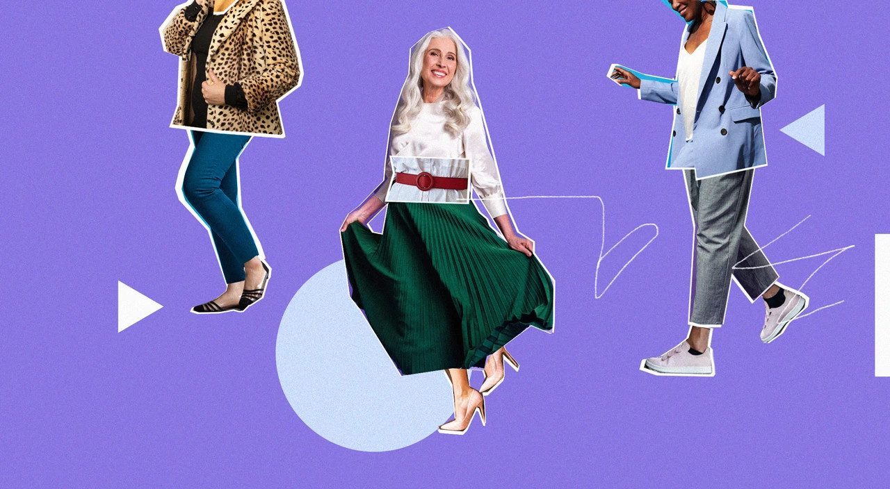 She also points to accessories like scarves and quality purses as good options to keep your look current. A pop of color — such as adding a red belt or shoes to a black-and-white outfit — can lend fresh flair. And don’t forget your lip color — it’s an accessory too. “You’re never too old for red lipstick,” says Packer. Over-50 women whose style she appreciates include Maye Musk, Lyn Slater (aka the Accidental Icon), Jennifer Lopez and Angela Bassett — all of whom can be followed on social media for future inspiration.