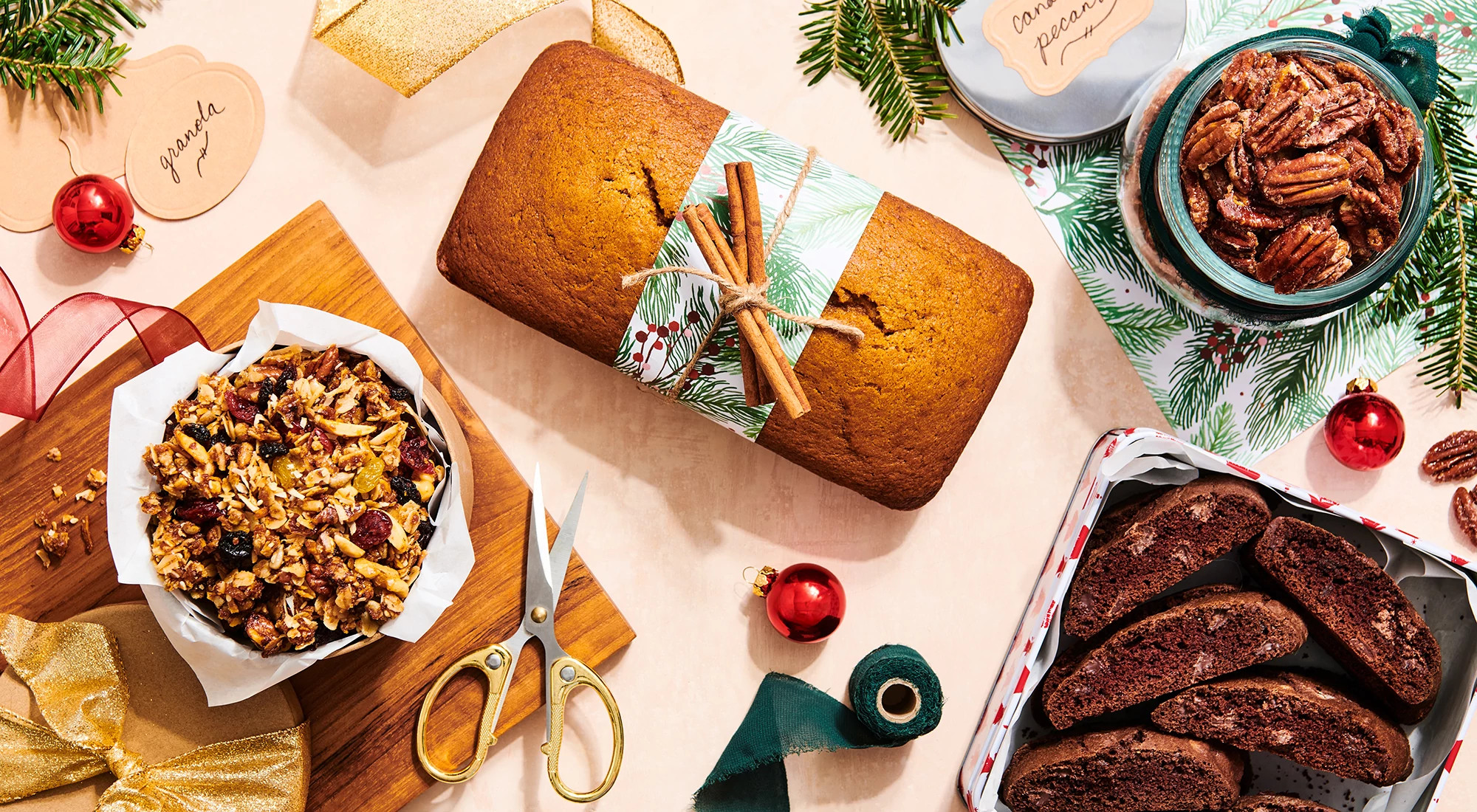 Though what I love most is to bring a homemade gift — no chef wants to show up to a party with a store-bought pie. The silver lining? Favorites like candied pecans, pumpkin bread, granola and biscotti are easy to whip up and they are also crowd-pleasers.