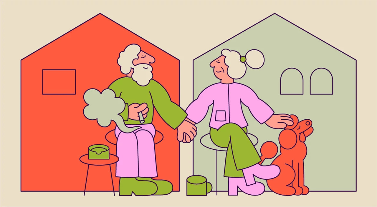 Dick lives in a retirement community nearby, where he smokes in his apartment. We meet for lunch and dinner each week. We celebrate holidays, birthdays, our anniversary. One recent summer evening, Dick sat on the deck and sipped a Scotch on the rocks. “We get along better this way,” he said.